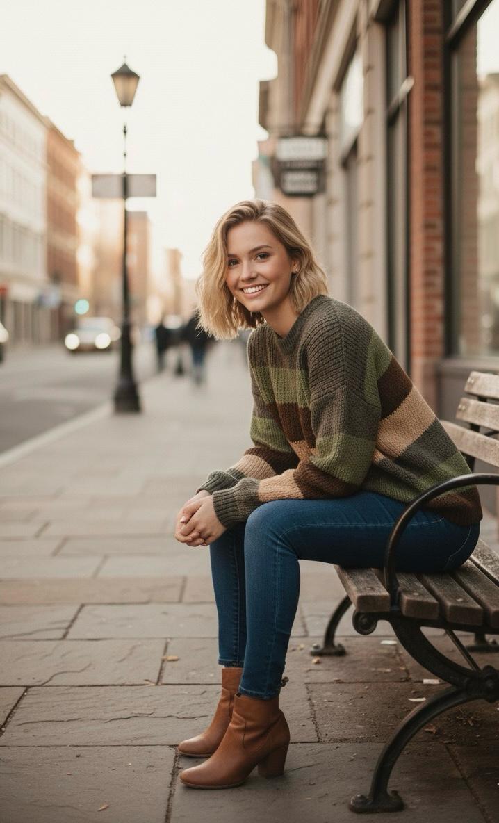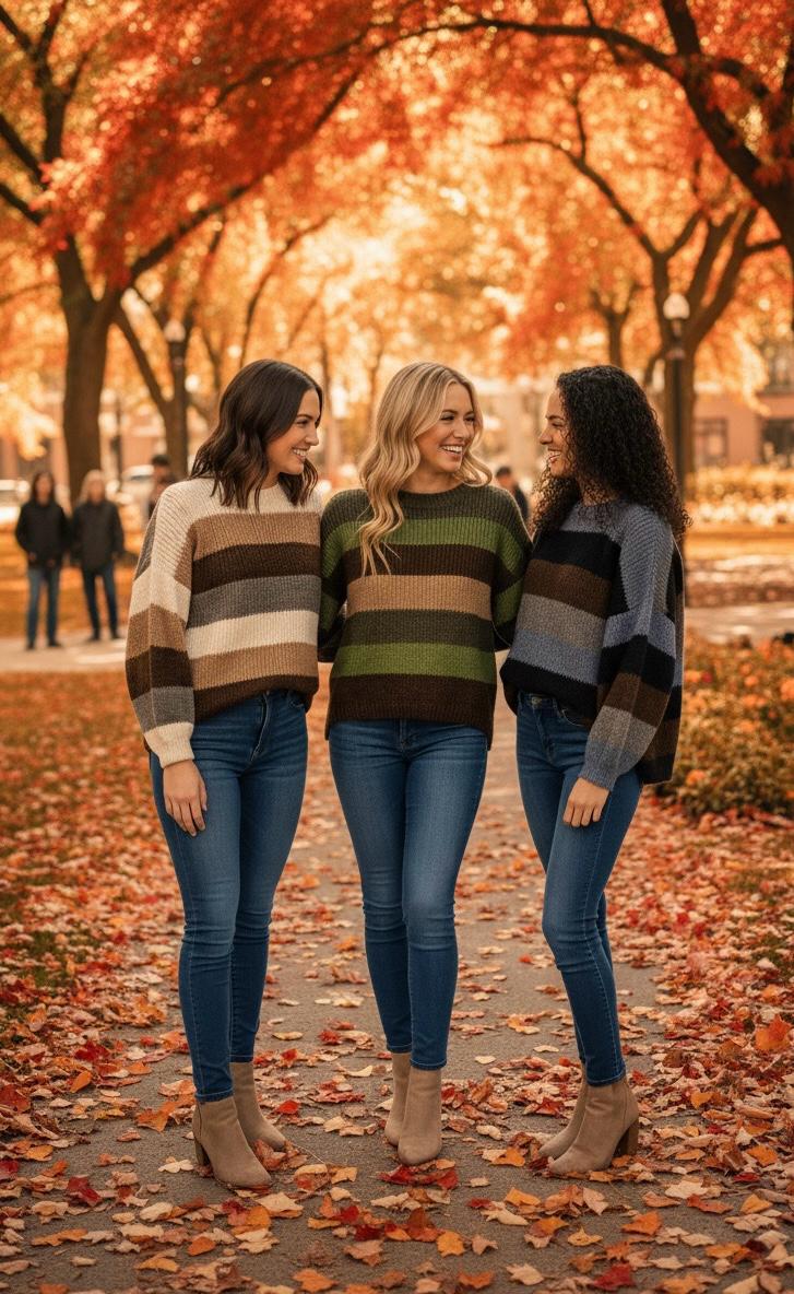 Le maniche appaiono leggermente a palloncino o comunque voluminose, contribuendo all’aspetto cozy (accogliente).